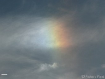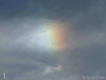 The white vertical line provides a better reference so the change in position of the sundog colour bands is more obvious.