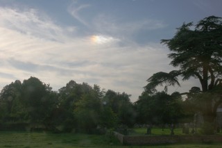 Much of the cirrus on this afternoon was formed by old contrails, though this particular sundog may be in ordinary cirrus.