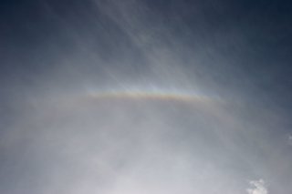 A weak 22 degree halo on the left joins up with part of an upper tangent arc to produce this odd looking halo.