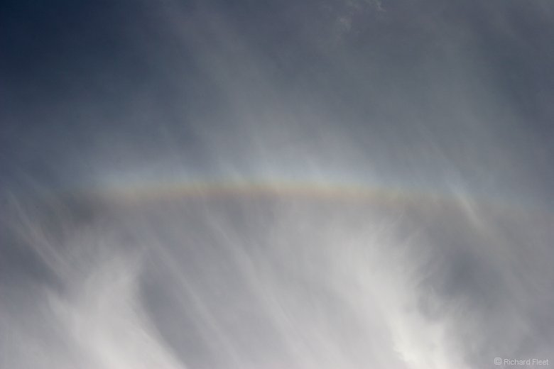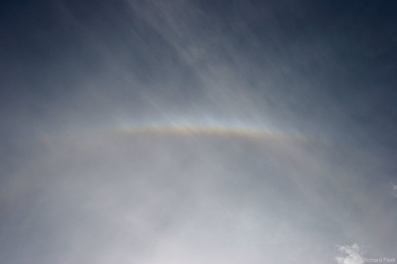 In this closer view some 20 minutes later another patch of cirrus has produced a strong upper tangent with no sign of the 22 degree halo.