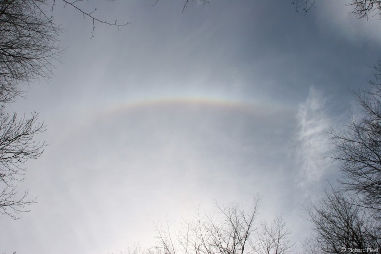 Cloud ahead of a front threatened to spoil the lighting conditions on a trip to see the bluebells in West Woods. For a short while this bright and colourful upper tangent arc was visible from a clearing, which made up for the deteriorating conditions.