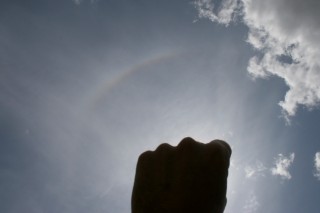 A war memorial column provided a useful sun shield for this high sun tangent arc. |