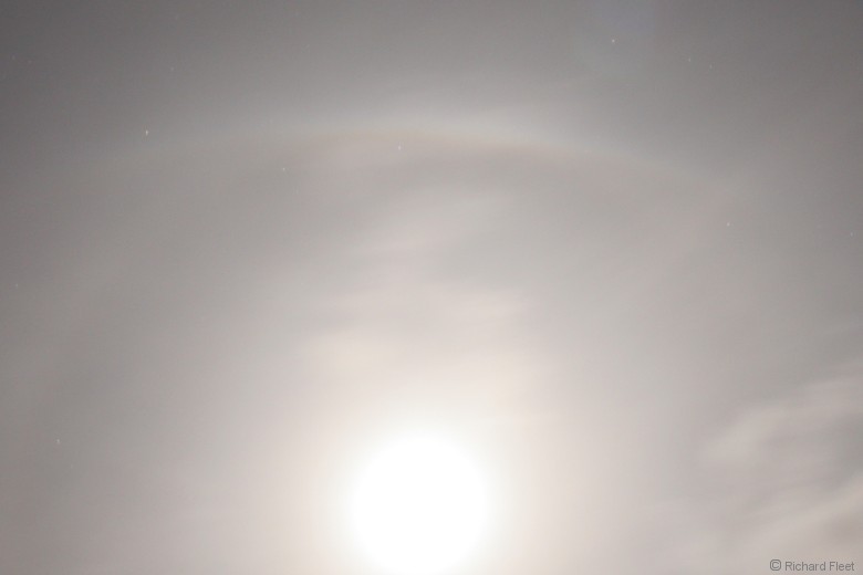This upper tangent arc above the moon was very obvious and clearly separates from the 22 degree halo.