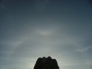 A few minutes later the 22 degree halo has faded but the upper tangent arc is still strong.