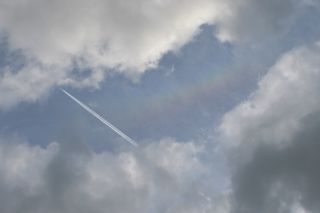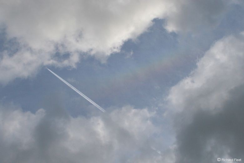 Half an hour later the appearance of the cirrus had changed again, giving this upper tangent arc and pair of sundogs.