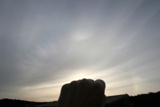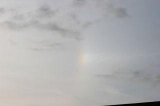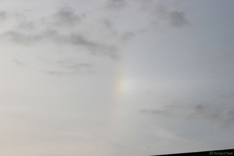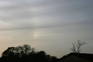 Twenty minutes later milky cirrus lower down down in the sky gave this sundog with a white tail going off to the right.