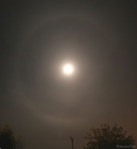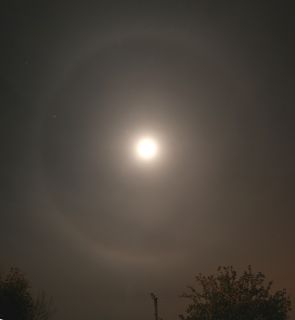 Three hours later with a fairly high first quarter moon a full 22 degree halo was visible.